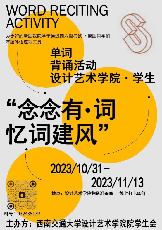 伟德源自英国始于1946积极响应号召,致力于建立严谨治学、积极进取的学习风气。为此,公司于2023年10月20日至2023年11月3日举办了“念念有词,忆词建风”的单词背诵活动。这项活动的目的是为了更好地帮助公司学子备考四、六级考试,并推动学风建设。